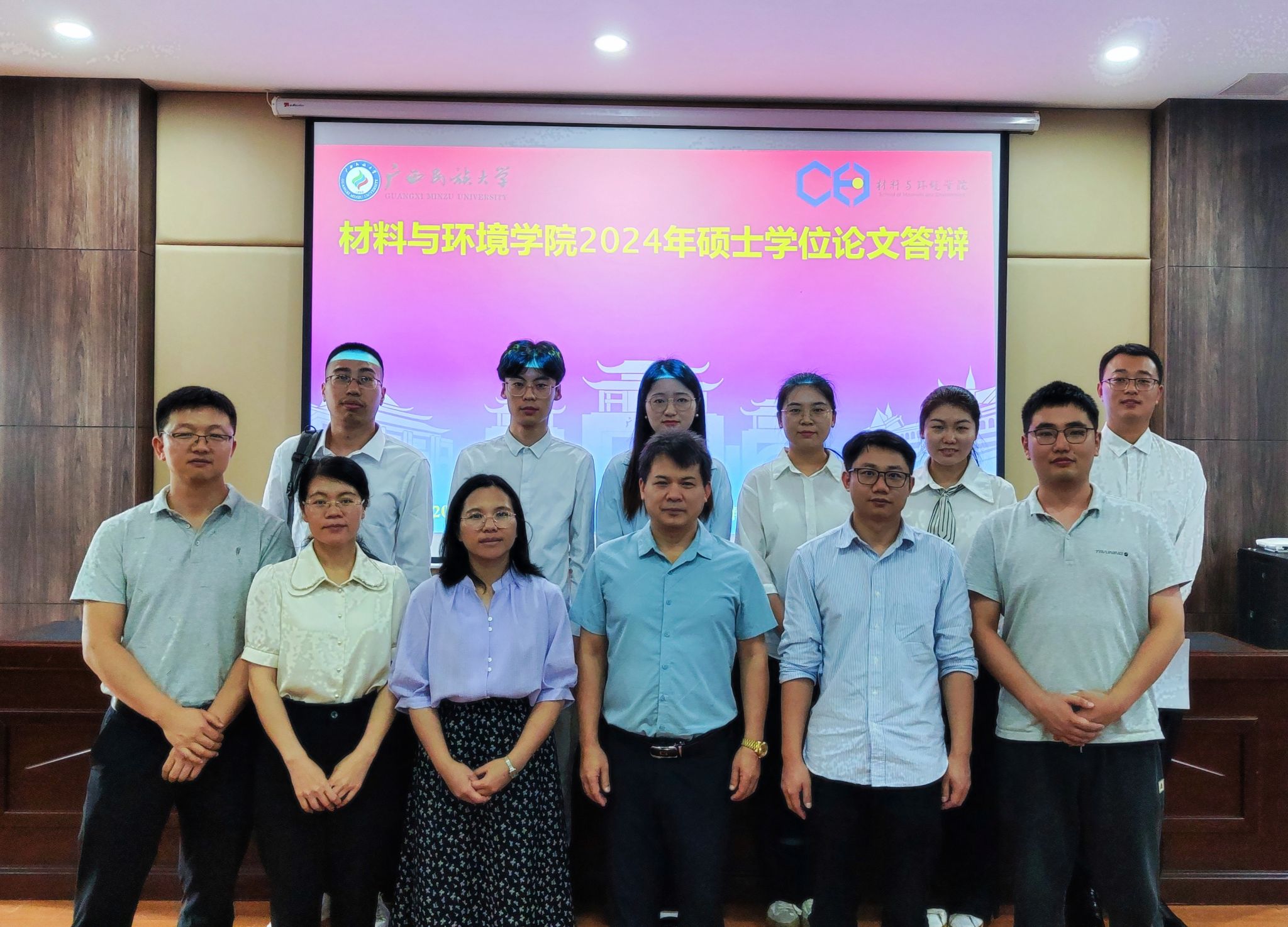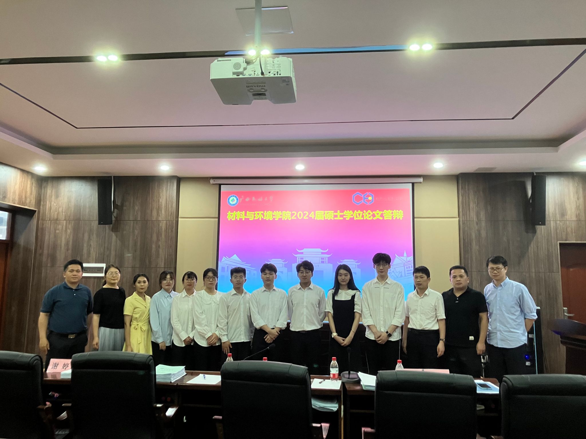 本次2024届硕士研究生答辩工作,我院根据不同专业方向分别邀请到广西南南铝加工有限公司副总经理教授级高级工程师任月路、广西农业科学院农业资源与环境研究所所长何铁光、广西大学化学化工学院副院长龚福忠、广西医科大学教授许胜担任各答辩组的答辩委员会主席,委员分别由广西大学物理科学与工程技术学院教授欧阳义芳、广西科学院研究员黄慨、广西大学资源环境与材料学院副教授朱金良、南宁师范大学化学与材料学院副教授龙攀峰及我校硕士研究生导师担任。我院2024届共计24名硕士研究生,他们通过PPT的形式,以饱满的热情和扎实的专业知识,就自己的研究课题进行了详细的阐述,展示了自己在研究领域的丰富成果和创新精神。