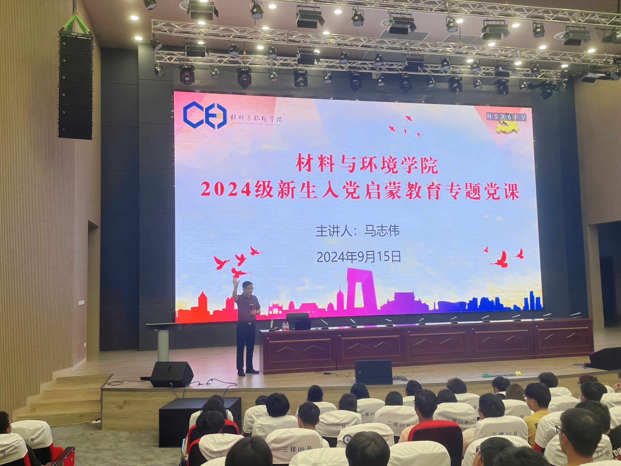 为加强2024级新生对党的认识,树立端正的入党动机,号召新生积极向党组织靠拢,9月15日晚,我院在武鸣校区图文中心小礼堂开展了新生入党启蒙教育,党委书记马志伟讲授专题党课,2024级全体新生参加。