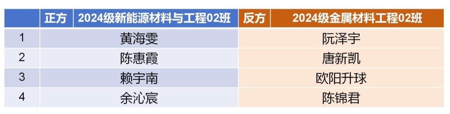 经过激烈的角逐和评委的现场打分,最终2024级新能源材料与器件02班战胜2024级金属材料工程02班,获得我院第二届“明辨杯”辩论赛决赛的胜利,2024级金属材料工程02班欧阳升球获得本场比赛最佳辩手。无论胜败,每一位辩手都带来了精彩的表现。