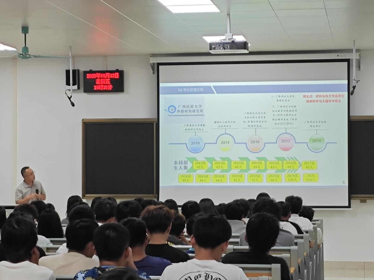 9月12日晚,各专业分别开展专业认知教育。金属材料工程、环境工程、智能制造工程、新能源材料与器件等专业的教师代表,为新生详细解读了专业的课程体系、发展方向与就业前景,引导新生树立专业信心、掌握学习方法,鼓励大家积极参与学科竞赛与考取技能证书,为个人的成长和发展打下坚实基础。