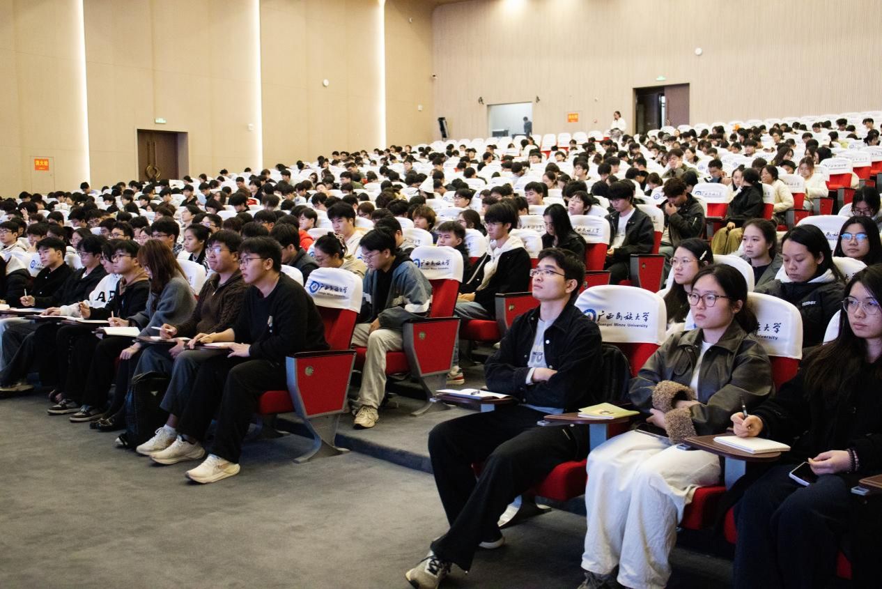 2025年12月24日晚,我院党委书记黄寒在武鸣校区图文中心大礼堂,为2022级、2023级全体在校学生讲授了一堂以“纪念抗战胜利,坚定民族信念”为主题的形势与政策课,引导青年学子在回望历史中汲取力量,在感悟时代中坚定初心。