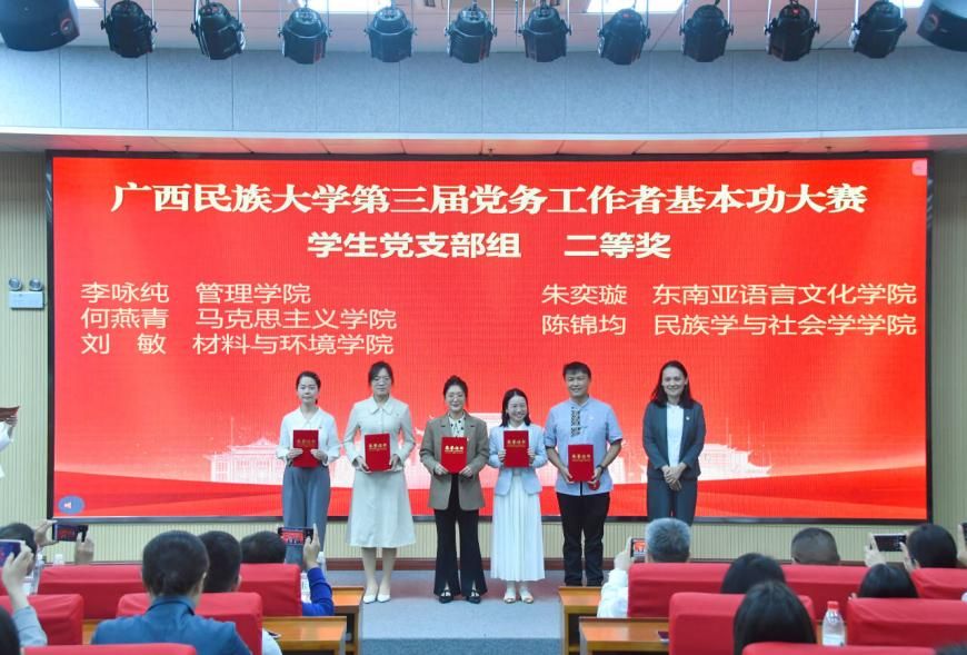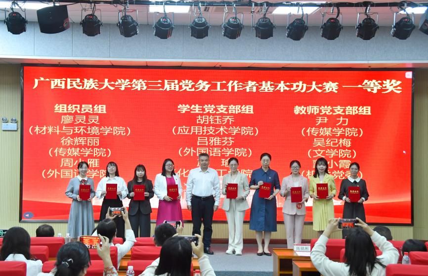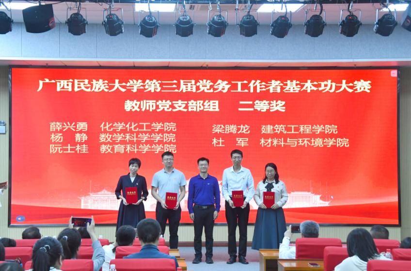 为深入学习贯彻《中国共产党普通高等学校基层组织工作条例》,推动落实基层党建“五基三化”巩固年行动,切实提升学校党务工作者履职能力和工作水平,11月7日至8日,广西民族大学第三届党务工作者基本功大赛在相思湖校区举行,我院教工第一党支部书记杜军、学生第一党支部书记刘敏、学生第二党支部书记廖灵灵参加比赛。