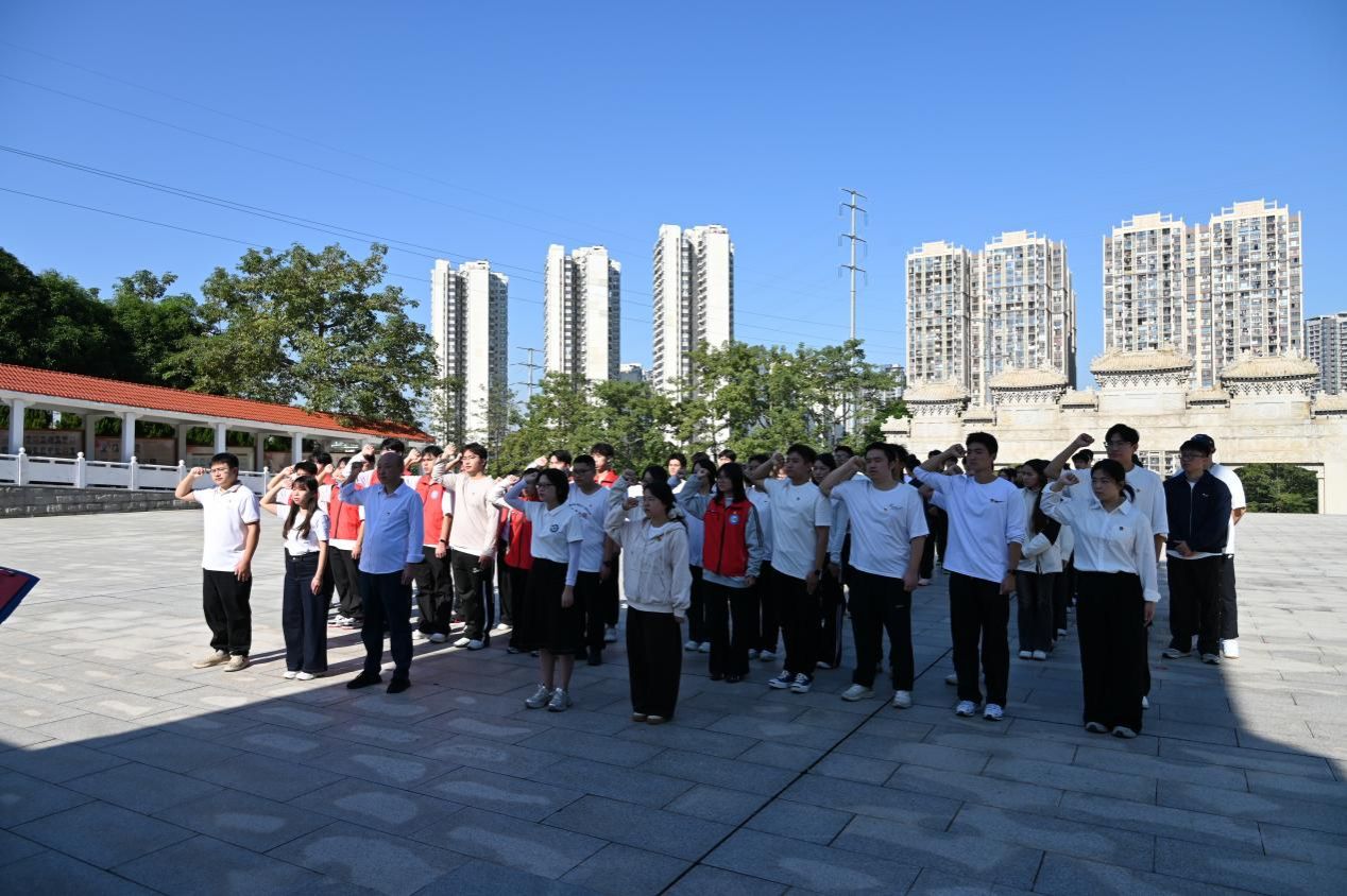 为深入学习贯彻党的二十届四中全会精神,大力弘扬伟大抗战精神,传承红色基因,强化党员党性修养,厚植师生爱党爱国情怀,11 月 15 日上午,我院组织师生代表赴广西壮族自治区烈士陵园开展 “抗战精神代代传,青春向党谱华章” 主题党日活动。学院党委书记黄寒、副院长雷炳新、分团委书记韩燕、全体专职辅导员,以及学生党员、团学干部代表、2025 级入党积极分子共同参与本次活动。