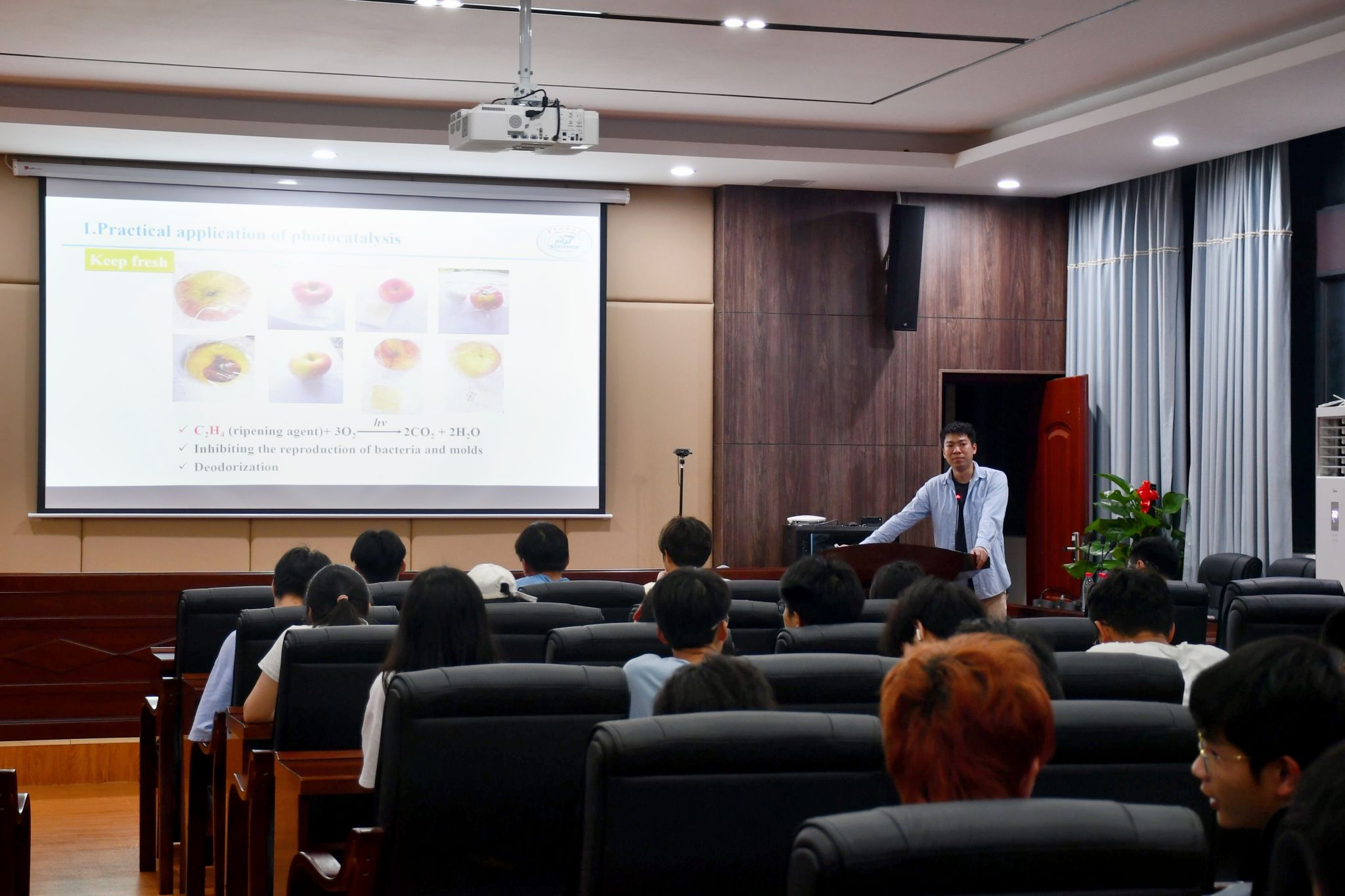 讲座最后,潘鸿辉博士对同学们的提问进行了耐心回答。此次讲座不仅给同学们科普了光催化的实践应用,还让同学们收获了光催化CO2还原的技术知识,同时还加强了师生之间的学术交流,激发了同学们对于光催化技术的兴趣。