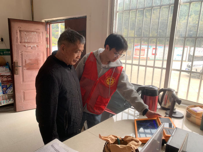 (22金属材料工程02班江展鹏在梧州市蒙山县帮助村中老人采集养老信息)