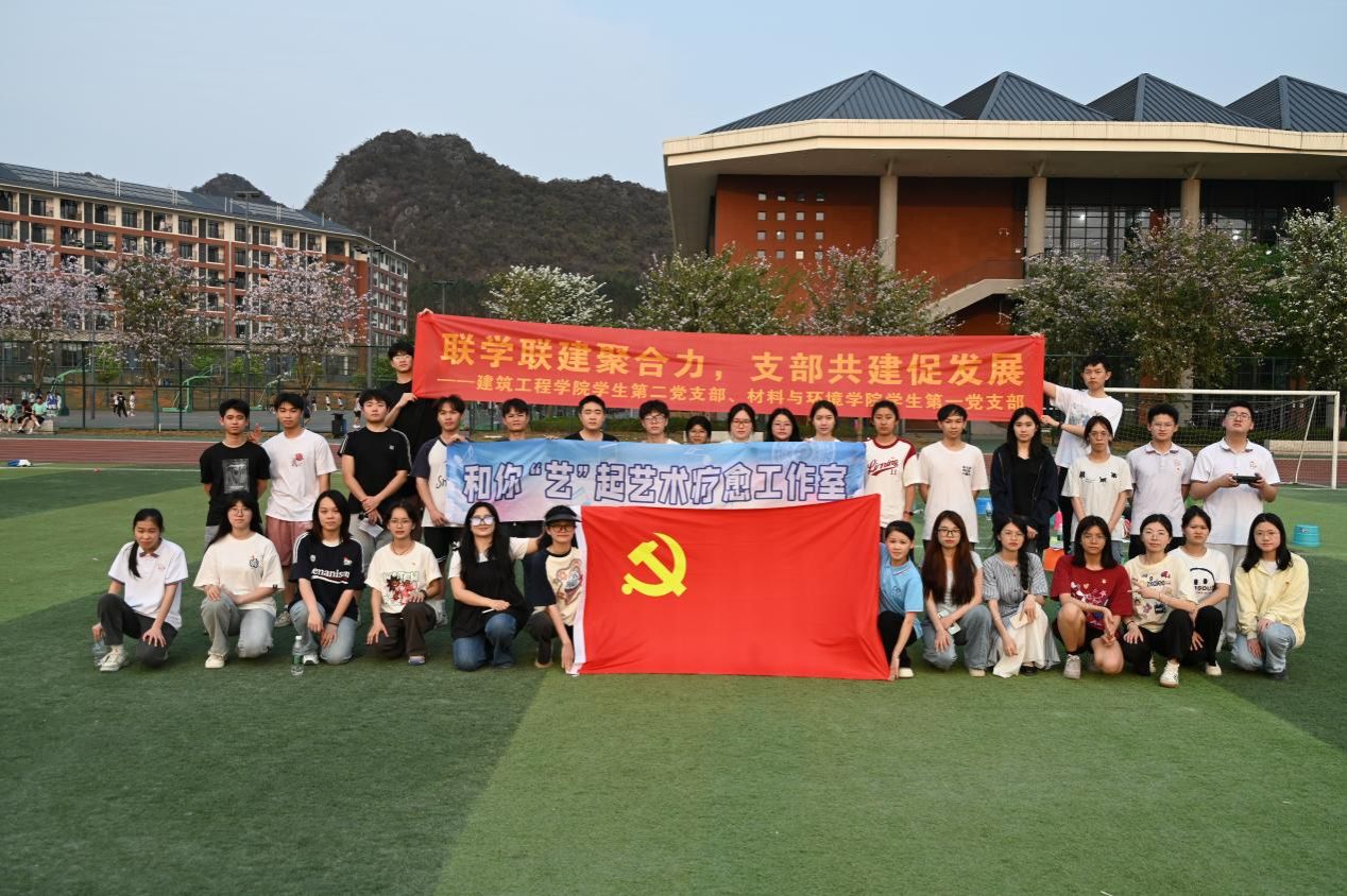 为深入贯彻党建引领理念,加强支部协同共进,4月11日,我院学生第一党支部与建筑工程学院学生第二党支部在武鸣校区操场举办了以“筑梦同行,心暖情长”为主题的共建活动。活动由“和你‘艺’起艺术疗愈工作室”辅导员老师全程指导,活动通过"党性教育+心理赋能"双轨模式,实现党建与心理健康的有机协同。