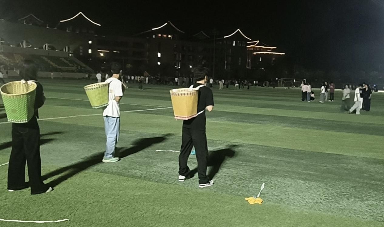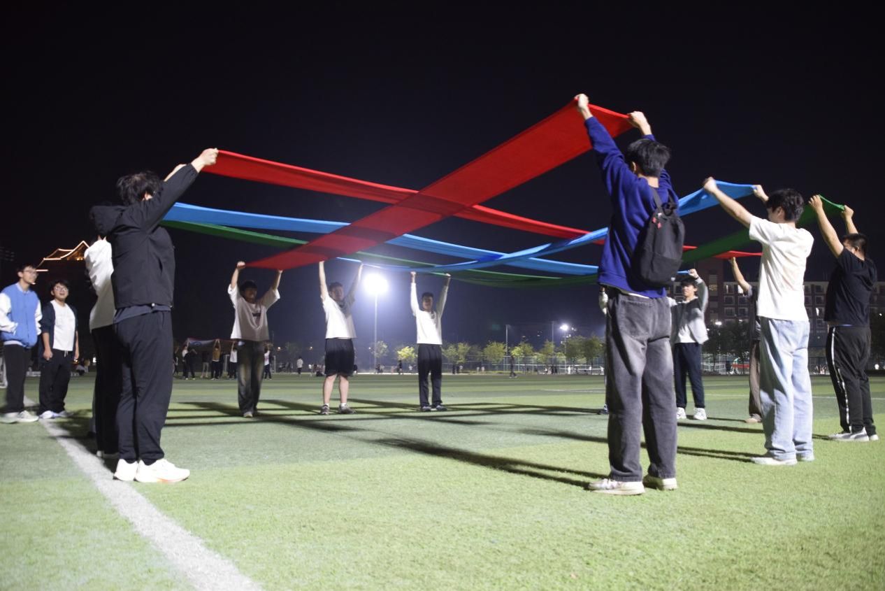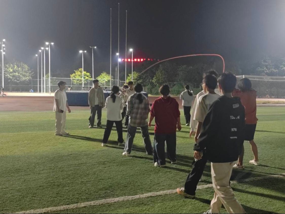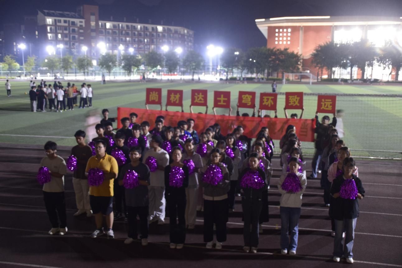 开幕式方阵表演排练现场,同学们精神饱满、配合默契。在带队同学的口令声中,大家反复调整队形、打磨动作,力求每一个细节都精准到位。手中舞动的花球,人群中奔跑的彩带,映衬着他们专注的身影,只为在校运会开幕式上展现材环学子最美的风采。