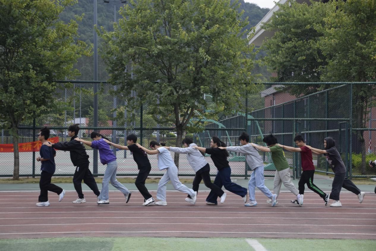 在径赛项目训练中,4×100米接力队队员们清晨便投入紧张训练。起跑、传接棒、冲刺……每一个环节都精益求精,不断挑战自我极限,锤炼团队默契。“和谐共进100米”项目中,队员们并肩协作、步调一致,在高年级同学的细致指导下,努力实现动作的整齐划一与节奏的完美统一。