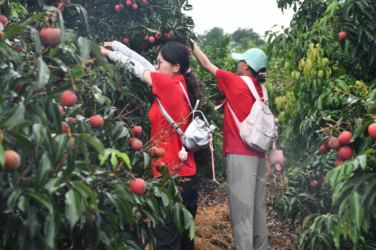 时值荔枝成熟季节,队员们走进荔枝园,冒雨协助果农开展采摘工作,通过有序分工、高效协作,缓解采收期间劳动力短缺的困难。此次助农活动让队员们体会到劳动的艰辛与收获的喜悦。大家纷纷表示,将继续积极参与实践锻炼,为乡村振兴贡献青春力量。