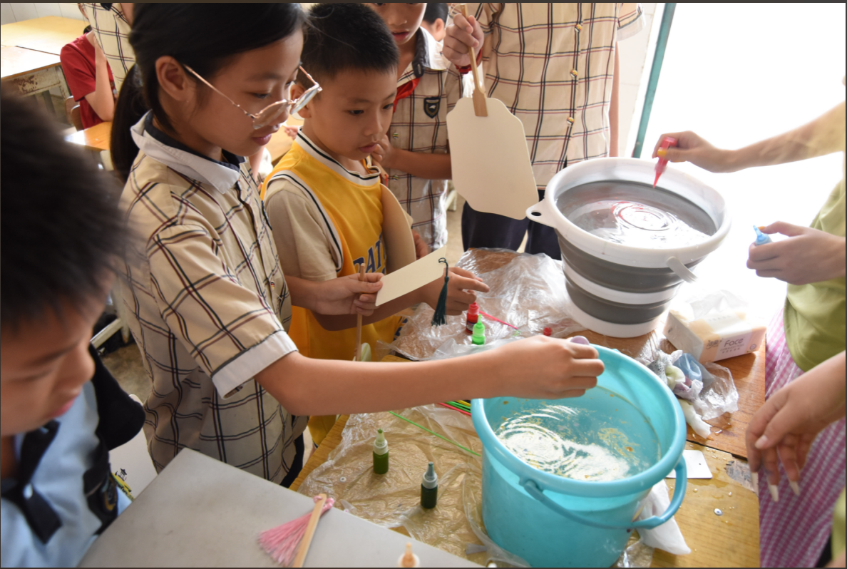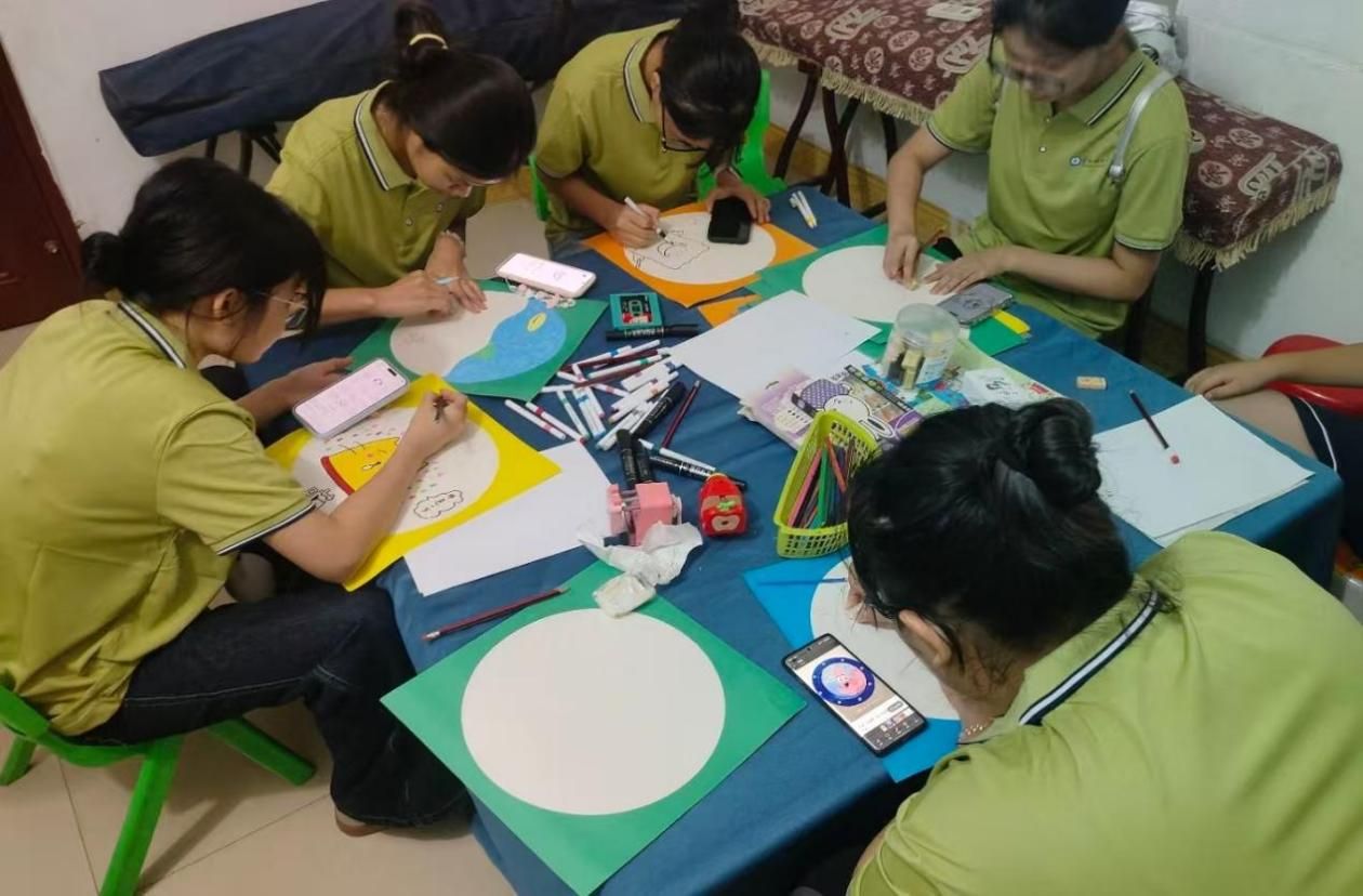 实践团为留守儿童开设了富有创意的知识小课堂。在电学科普环节,队员们通过生动有趣的实验演示电流、电路等抽象知识激发孩子们的科学兴趣。漆扇制作课堂上,孩子们在指导下发挥创意,绘制出多彩图案,展现出丰富的艺术潜能。团队还在当地托管所开展绘画志愿服务,用画笔描绘彩虹、动物与城堡,营造温馨活泼的氛围,为孩子们的暑期生活增添绚丽色彩。