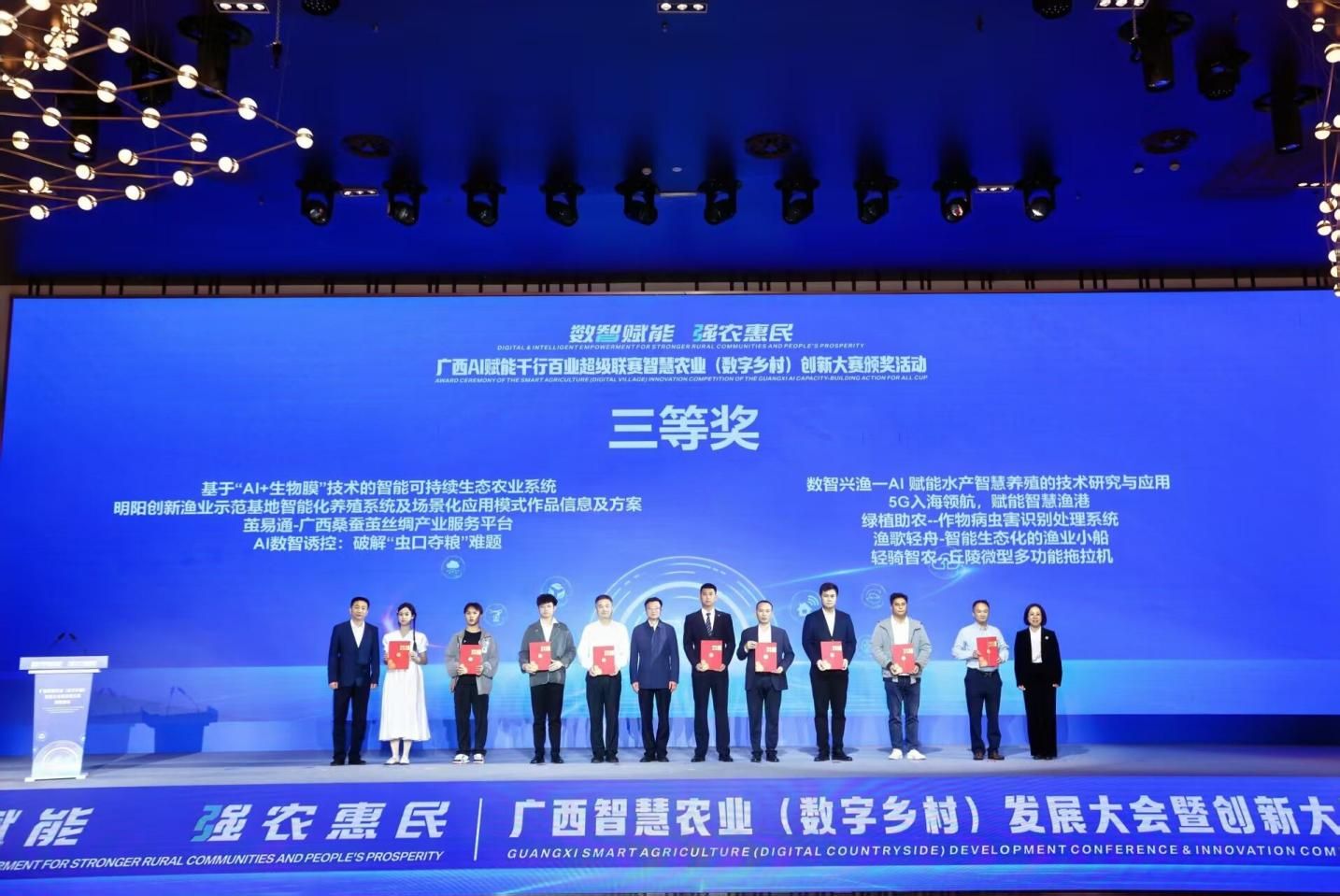 2025年11月5日,广西智慧农业(数字乡村)发展大会暨创新大赛颁奖活动在南宁隆重举行。我院“净千回源科技”团队凭借“智能生态化渔业小船”项目,在激烈竞争中脱颖而出,荣获大赛学生赛道三等奖。