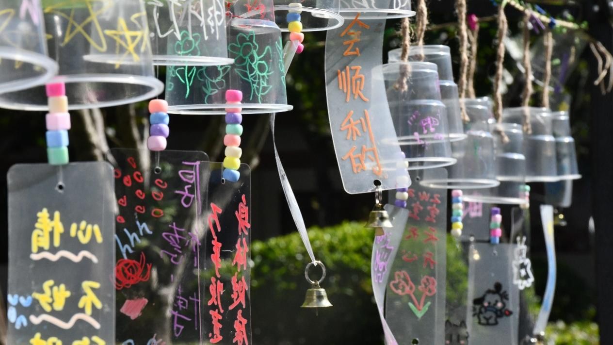 (展示区展出多件风铃作品)